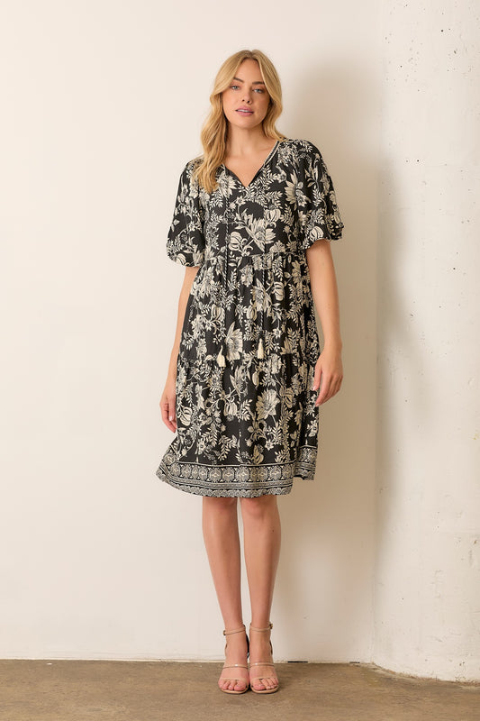 Madeline Texture Tiered Midi Dress-Navy Sheer -