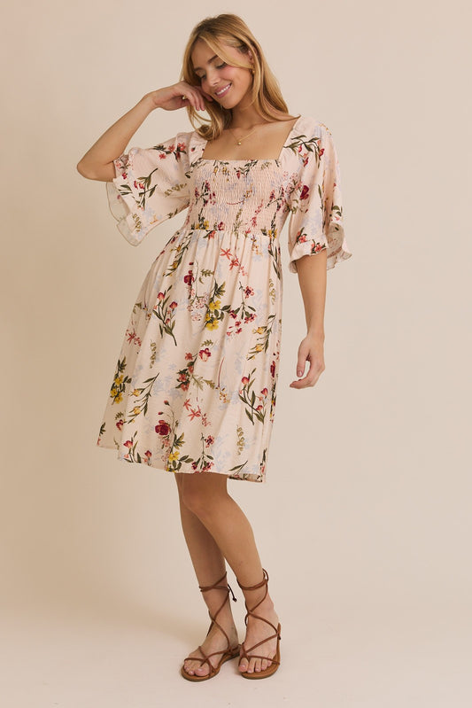 Lyla V-Neck Sweater Dress-Camel Knit -